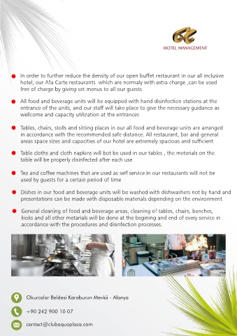 All food and beverage units will be equipped with hand disinfection stations at the