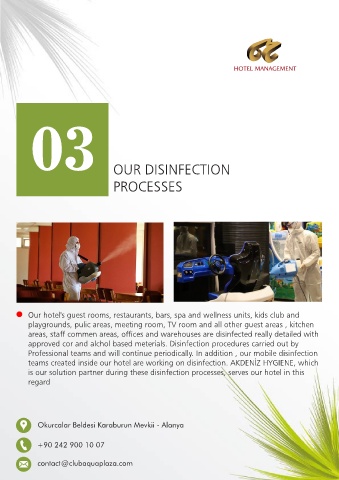 teams created inside our hotel are working on disinfection. AKDENİZ HYGIENE, which
